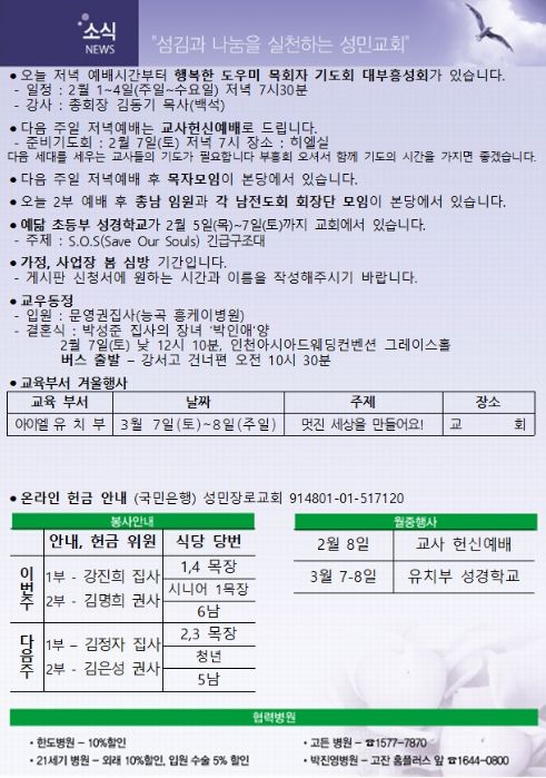 2월 1일 주보소식
